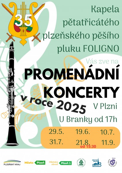 Termíny promenádních koncertů v plzeňských městských sadech "U Branky" v roce 2023: