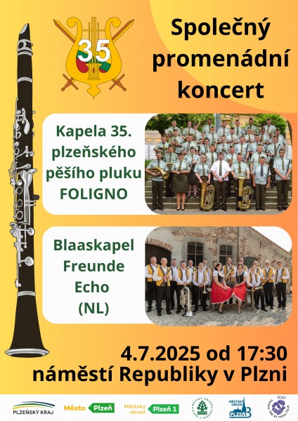V sobotu 28. září 2019 se v Plzni po roce uskutečnilo již třetí Mezinárodní setkání hudebníků. V letošním roce se ho zúčasnily německé orchestry Feuerwehrverband Hannover a Musikverein Burgweiler, z Rakouska přijeli Musikverein Harmonie Weiler, domácí barvy zastupovala Klatovská mládežnická kapela KUFR a naše Kapela pětatřicátého plzeňského pěšího pluku FOLIGNO. Vše vypuklo úderem desáté hodiny dopolední. Hannoverští hasiči hráli v Mlýnské strouze, hosté z rakouska v Křižíkových sadech v Proluce, před Západočeským muzeem účinkovali mládežníci z Klatov, u divadla J.K.Tyla druhá německá kapela a my domácí jsme koncertovali na Náměstí Republiky. Před dvanáctou hodinou napochodovaly všechny orchestry na náměstí, kde jsme, po zdravici pana primátora Martina Baxy a pořádajících cestovních agentut, všichni dohromady zahráli čtyři skladby. Eurohymnu, pochod Šly panenky silnicí, Radeckého marš a nemohla samozřejmě chybět světoznámá Vejvodova polka Škoda lásky.