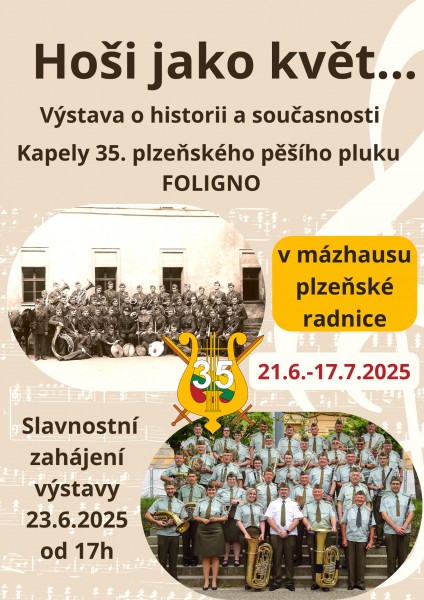 Vážení přátelé, milí fanoušci "Kapely pětatřicátého plzeňského pěšího pluku FOLIGNO". V současné době pilně nacvičujeme program pro naši letošní koncertní sezonu, kterou zahájíme v sobotu 30. dubna ve Šťáhlavech. Kromě našich pravidelných vystoupení se zvláště těšíme na Pražský Hrad, kam jsme pozváni na zahájení turistické sezony v sobotu 14.5. a na dvakrát odloženou účast na Kmochově Kolíně 11.6. A hlavně se těšíme na vás, naše posluchače.
